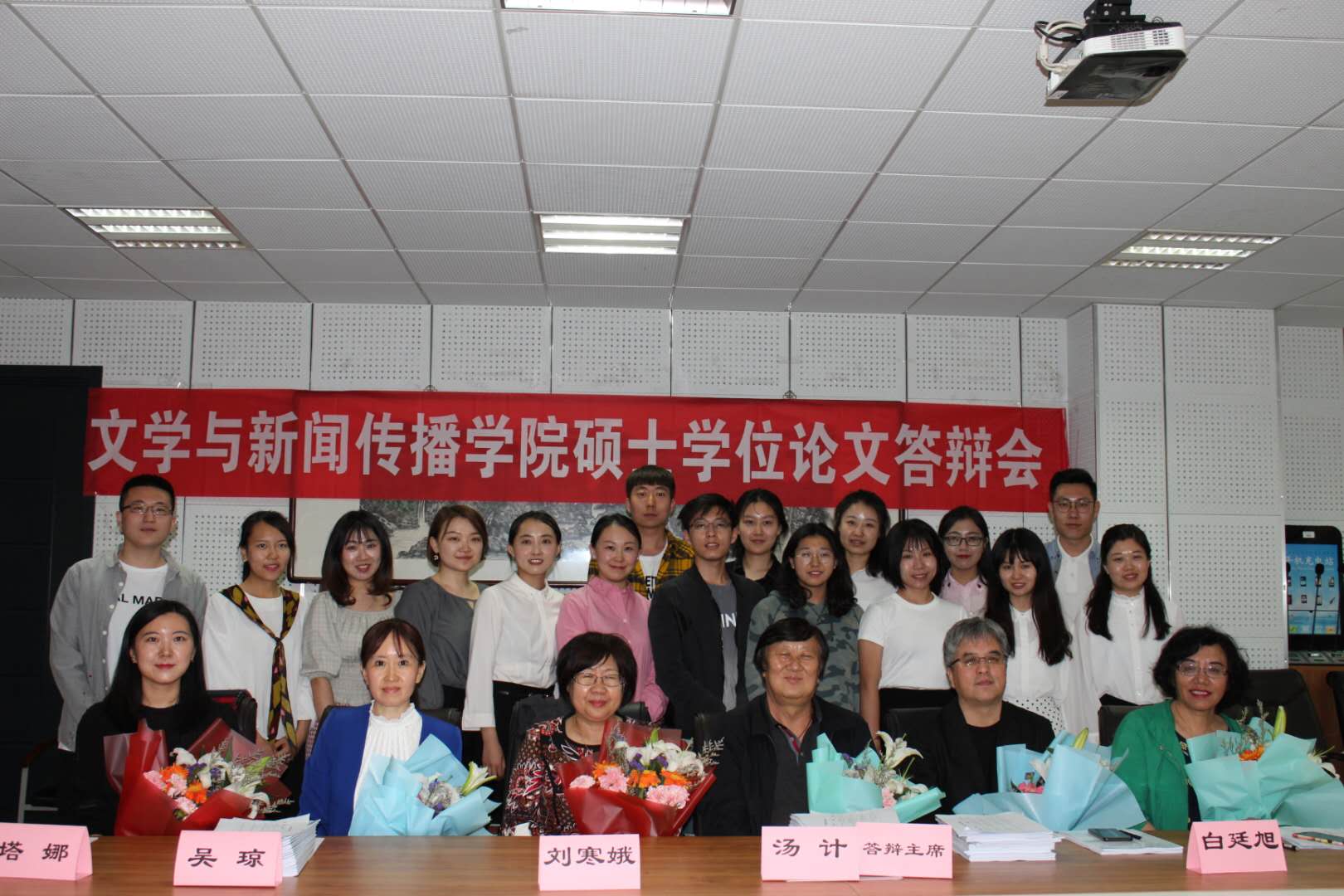 本次答辩共分4场,河北大学新闻与传播学院教授白贵,新华社内蒙古分社原政文部主任、著名记者汤计,中央广播电视总台高级记者、原宁波记者站站长焦健,内蒙古广播电视台总编辑、副台长张兴茂,内蒙古广播电视台原副台长顾永生,内蒙古日报媒体融合部主任郝斌,内蒙古日报社专题部主任张兆成,内蒙古广播电视台新闻中心主任王虎全,内蒙古广播电视台新闻综合频道总监白廷旭,新华社中国经济信息社内蒙古中心总经理张润光以及我院16位专业研究生导师担任答辩委员会委员。