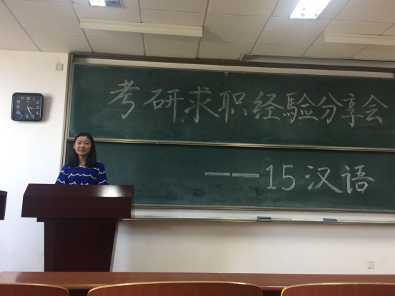 2017年5月18日与5月25日下午,2015级汉语言文学班分别邀请2013级汉语言文学和汉语国际教育的优秀毕业生分享考研与求职经验。汉语系主任刘志中副教授也参与分享会并给同学们介绍了考研求职的一些注意事项。