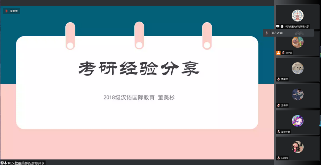 董美杉,2018级汉语国际教育专业学生,考研至南开大学语言学及应用语言学专业。她向大家介绍了研究生考试中大综合和小综合的区别,并提醒同学们要根据自己的兴趣、自身能力以及目标的实际情况来选择合适的院校。
