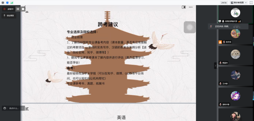 会议的最后,邢佳玥老师提醒同学们,近期疫情形势较为复杂,注意做好个人防护。同时建议同学们结合自身情况和职业规划,认真考虑是否选择考研。在明确了自己的道路后,要把握时间,积极规划,为未来发展奠定坚实的基础。
