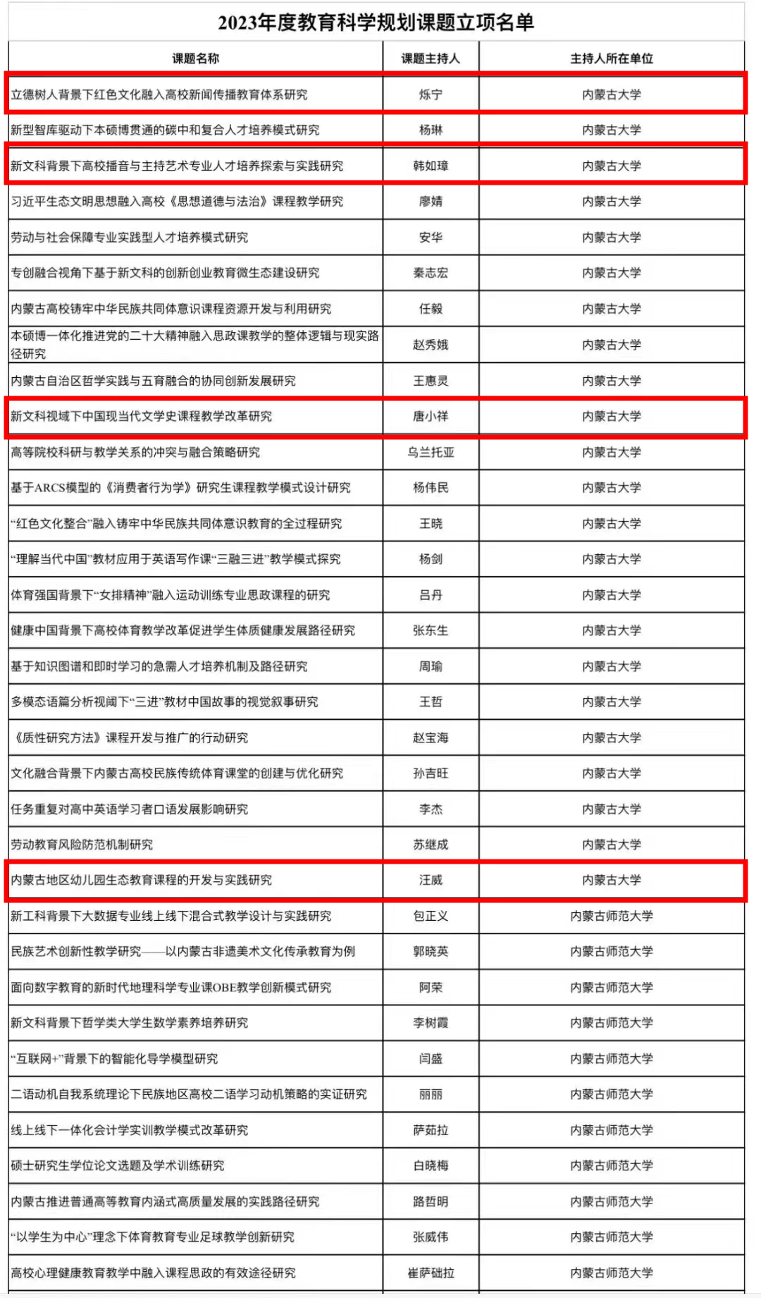 近日,自治区教育科学“十四五”规划2023年度课题评审公示,我院有四位老师立项,分别为:烁宁老师、韩如璋老师、 唐小祥老师、 汪威老师。