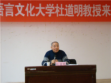 教室举办“中西文化根本精神之比较”为主题的学术讲座,讲座由北京语言文化大学杜道明教授主讲。yl23455永利集团副院长魏永贵主持讲座,学院教师、研究生、本科生共300余人共同聆听了本次讲座。杜道明教授现为北京语言大学人文学院教授,博士生导师,《中国文化研究》常务副主编。