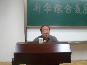 教授对大学生提升综合素质提出了自己的看法和建议。他告诉新生要尽量适应大学生活并学会同学间的竞争与合作,在面对顺境和逆境时要摆正心态。大学是学生步入社会前的小社会,它教会新生学会独立自主的生活,合理规划自己的人生,使学生成为自信、自律、自重、自强的适应社会的人。他强调人生是一场单程的旅行,旨在要学会利用有限的时间提升思想道德修养,将自己的个人目标与国家相联系。他认为同学们应从德育、智育和体育多方面发展自我,在大学期间应丰富自我,多做对自己未来发展有益的事情。