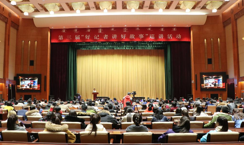 12月16日下午,由中宣部、中国记协等四部门组织的第三届“好记者讲好故事”巡讲团报告会来到我区,9名来自中央媒体、部分省区市和行业媒体的记者结合自己的采访经历,为我区及中央驻区主要新闻单位编辑记者、驻呼高校新闻院系师生400余人作了精彩的报告。2016级新闻班的同学的43名同学参加了报告会。