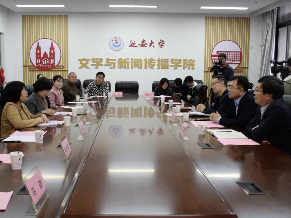 延安大学文学院院长王俊虎、副院长杨绍固、中文系主任刘鑫分别就学院的基本情况、本科教学和专业设置情况、研究生教育和学科建设情况进行了介绍。