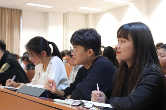 王朝老师结合新华社新媒体中心的发展历程,向师生介绍了微信公众号整体情况和发展趋势,从微信推文标题、内容、版式语言等方面,引用大量的数据和新华社编辑案例,对开展新媒体的宣传策划、创新工作方法扩大宣传范围等方面内容作了精彩阐述。