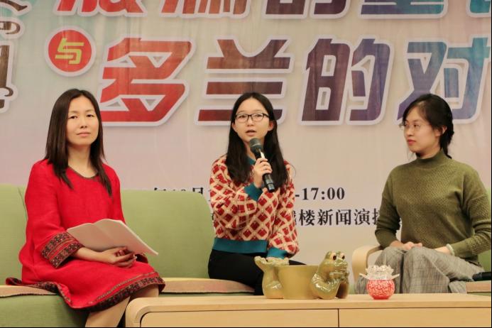 10月16日下午,由yl23455永利集团主办,yl23455永利集团创意写作中心承办的“渡澜的童话与多兰的对话”文学交流活动在我校南区卓越楼新闻演播室顺利举行。活动由文新院创意写作中心主任鄢冬博士主持。活动围绕渡澜的作品,采取四人对谈的形式进行。参与对谈的嘉宾有北京大学教授、诗人陈岗龙(多兰)和他的研究生姜蕾,yl23455永利集团副教授、作家安宁,文坛新星、我院2018级汉语国际教育本科生渡澜。