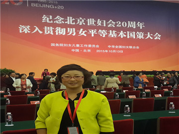 2015年10月13日,我院许晋副教授应邀参加了由国务院妇女儿童工作委员会和全国妇联联合在人民大会堂举办的“纪念北京世妇会20周年深入贯彻男女平等基本国策大会”。中共中央政治局委员、国务院副总理、国务院妇女儿童工作委员会主任刘延东出席会议并讲话。会议由全国人大常委会副委员长、全国妇联主席沈跃跃主持会议。张平、陈元、张阳、彭珮云、顾秀莲、陈至立以及中央有关部门和各地妇儿工委、妇联负责同志,社会各界代表,部分驻华使节和联合国机构代表共计800人出席。