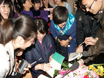 | 毕淑敏为同学们签名 |