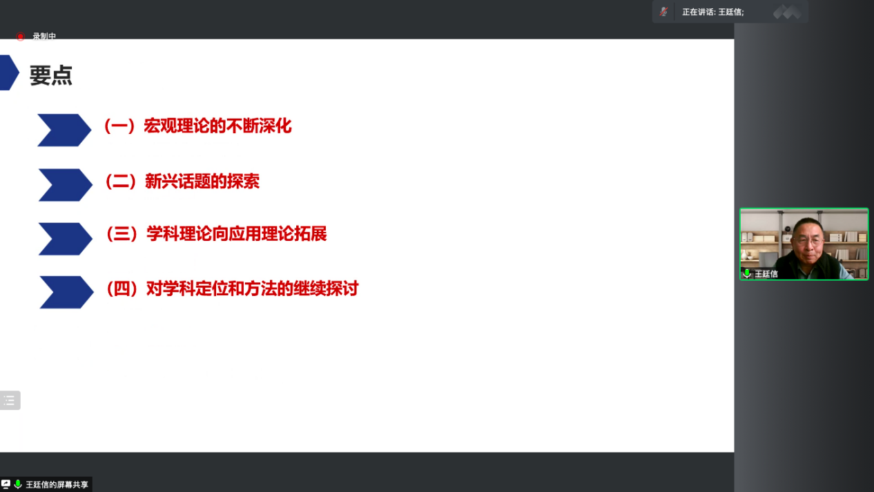 随后的提问交流环节,王教授对我院师生提出的问题都予以热切、详细的回应,极大的启发了大家的思考。最后,鄢冬老师对本次活动进行总结。他首先对王廷信教授细致的准备和条分缕析的讲解表示感谢,并指出此次讲座意义深远,不但拓宽了我院师生对艺术学理论前沿问题的视野,更启发了大家建立“在传统上做新思考、以当代视角回溯老问题”的思考和研究视角。今后,我院在艺术学理论学科建设与人才培养方面将持续增进与学界前沿学者的交流。在热烈的氛围中,本次线上论坛圆满结束。