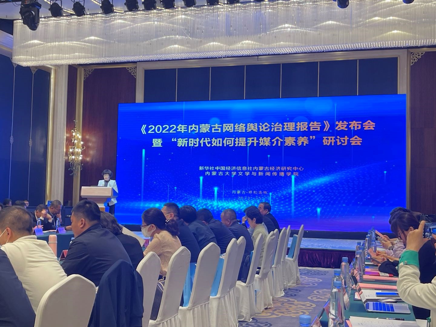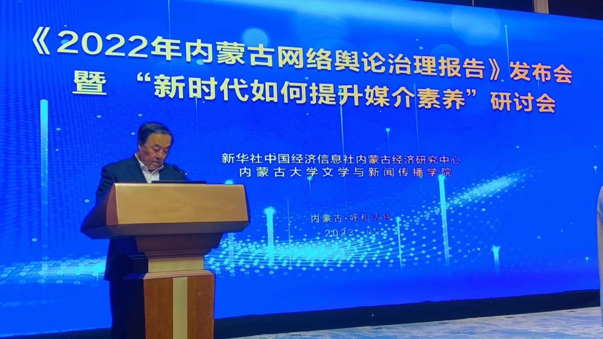 2023年5月30日下午15:00,由我院与新华社中国经济信息社内蒙古经济研究中心主办的《2022年内蒙古网络舆论治理报告》发布会暨“新时代如何提升媒介素养”研讨会在呼和浩特市新城区内蒙古饭店草原丝路厅隆重举行。