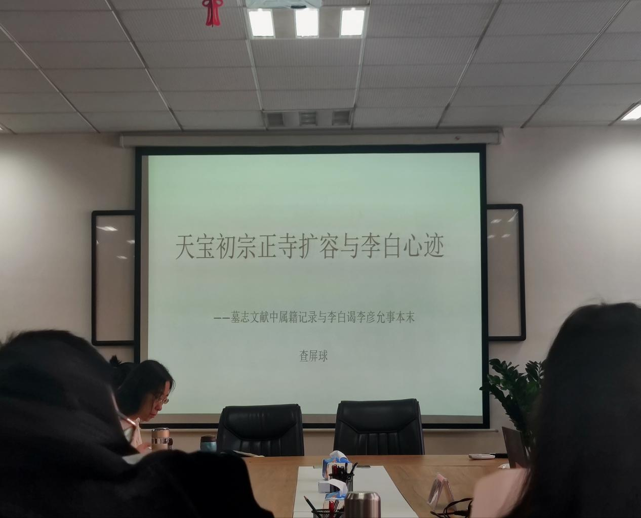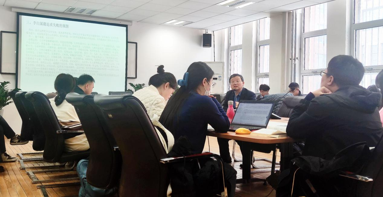 查屏球教授首先结合史料,对宗正寺的职能和李白的身世进行了介绍,接着从天宝墓志内容切入,论述了天宝初期唐玄宗扩容宗正寺政策所引起的巨大反响。其次,查屏球教授分析了唐玄宗扩容宗正属籍政策对李白于天宝初期活动的密切影响,并强调同学们做学术时要有打破砂锅问到底到的精神。最后,查屏球教授分别从“漏于属籍,无征可信”“地位过低,无缘申请”“未完成入道程序,未得官方道籍”和“所托非人,求援失败”,等四个方面阐明了李白争取身份优势失败的原因。他的讲解生动有趣,深入浅出,使与会师生对李白的人生经历与诗歌内容有了更深刻的认识。