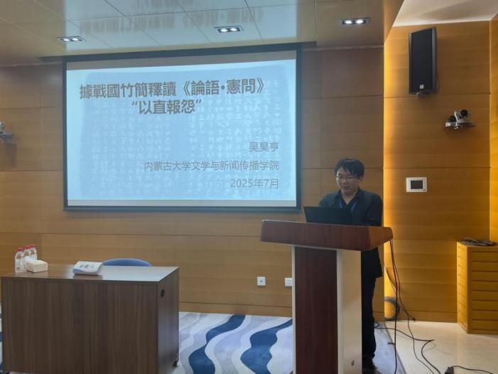 在7月6日上午分会场的讨论环节,吴昊亨老师宣读题为《据战国竹简释读<论语·宪问>‘以直报怨’》的论文。论文认为《论语》中耳熟能详的“以直报怨”中的“直”实际上应当通“德”,在战国竹简《清华简·子产》中也有一句话中{德}分别写作“惪(德)”和“直”的情况,《论语》中的情形很可能与之类似。很多学说都提到过“以德报怨”,“以德报怨”应当是当时一种普遍的说法。