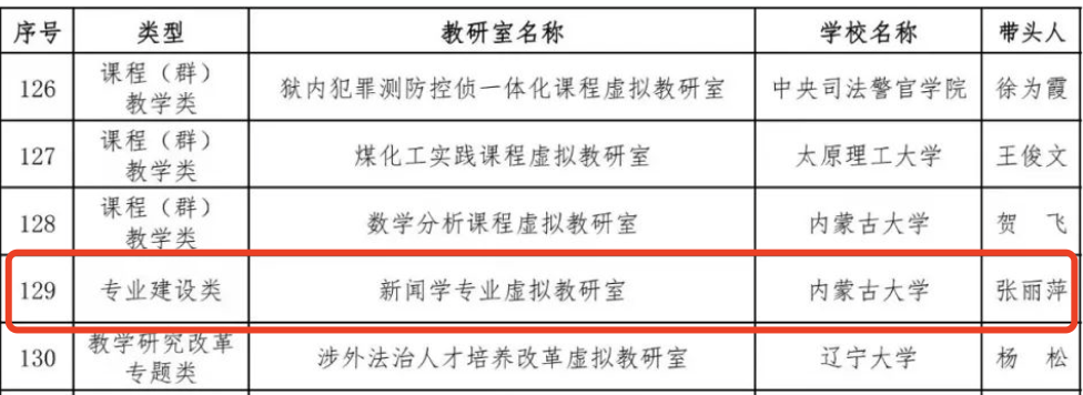 “新闻学专业虚拟教研室”为专业建设类教研室,由我院张丽萍教授牵头组建,共22名成员。教研室成员来自中国人民大学等3所区外高校、内蒙古师范大学等5所区内高校和内蒙古日报、内蒙古广播电视台等合作单位。教研室主要依托国家级一流本科专业建设点“新闻学”构建。教研室建设坚持“外引内联”跨区域协作,旨在解决内蒙古地区高校新闻学专业发展面临的共性问题,突破常规边界,在师资培养、课程建设、永利集团、资源共享等方面优势互补、互通有无。