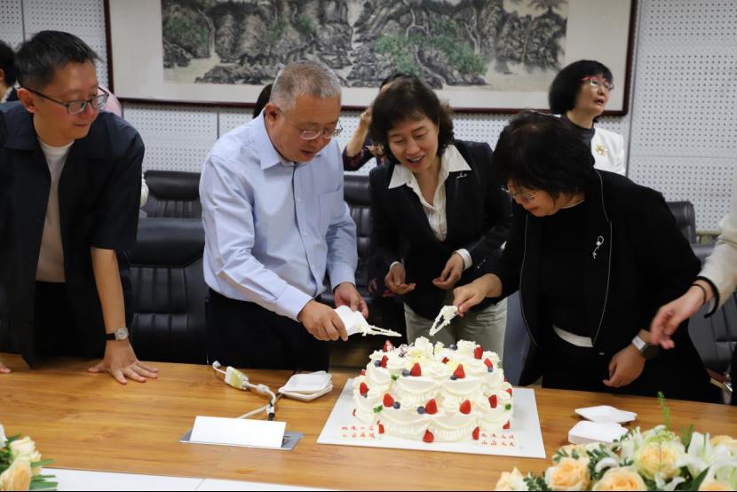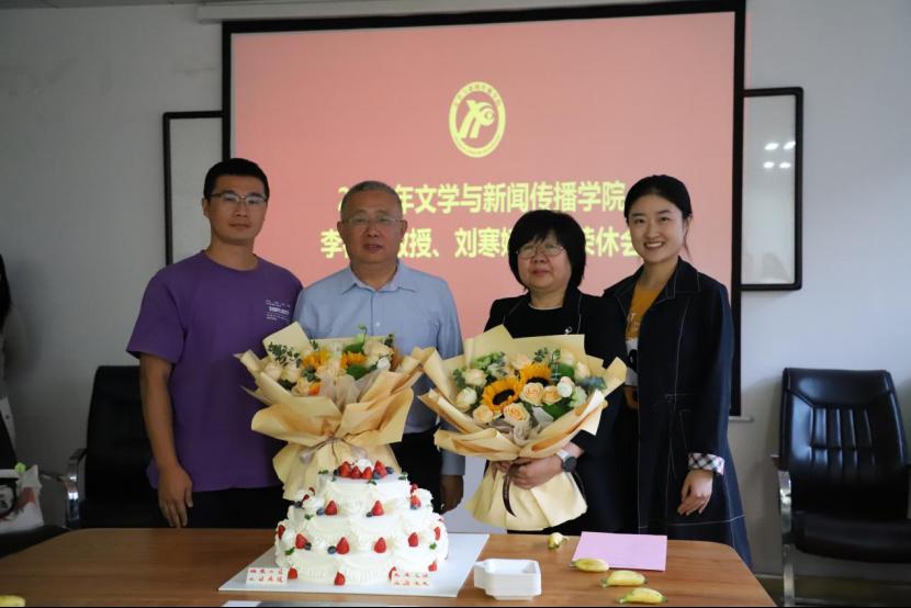 发言环节过后,我院青年教师向两位荣休教师献花并捐赠书法作品,学院领导向两位荣休老师颁发荣休纪念品,最后,随着两位荣休教师为与会教师切割蛋糕,荣休会在其乐融融的氛围中圆满结束。本次荣休会的成功举办,不仅是我院人文情怀的彰显,也是我院文脉悠长的具体体现,学院教师必将以两位荣休教师为楷模,再创新辉煌!