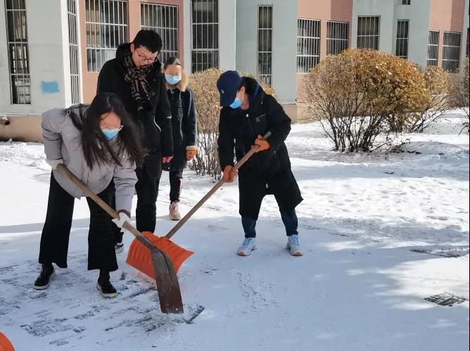 为及时清除校园道路积雪,避免路面结冰带来安全隐患,我院组织完成“扫雪除冰,青春护航”铲除积雪劳动课程内容,2020—2021级同学们以身作则,踊跃参与到本次扫雪行动中。