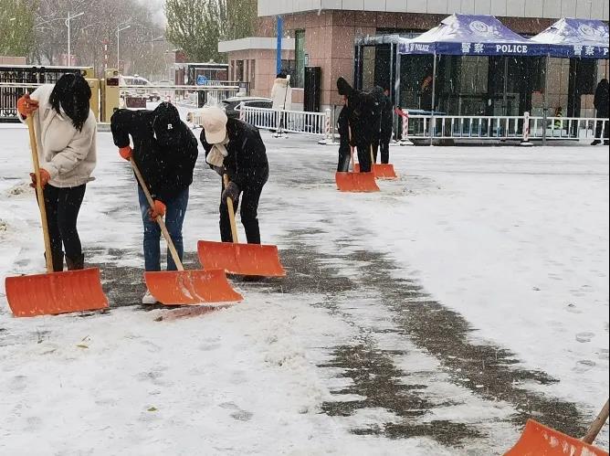 11月6日上午10:30,我院2021级志愿者在南区西门及各宿舍楼等区域扫雪除冰。虽然气温很低,但大家团结协作、不畏严寒,有序地清理校园内路面积雪,保障了同学们的顺畅出行,更在严冬里传递了一份正能量。