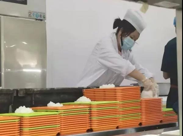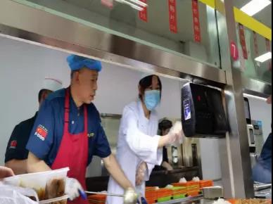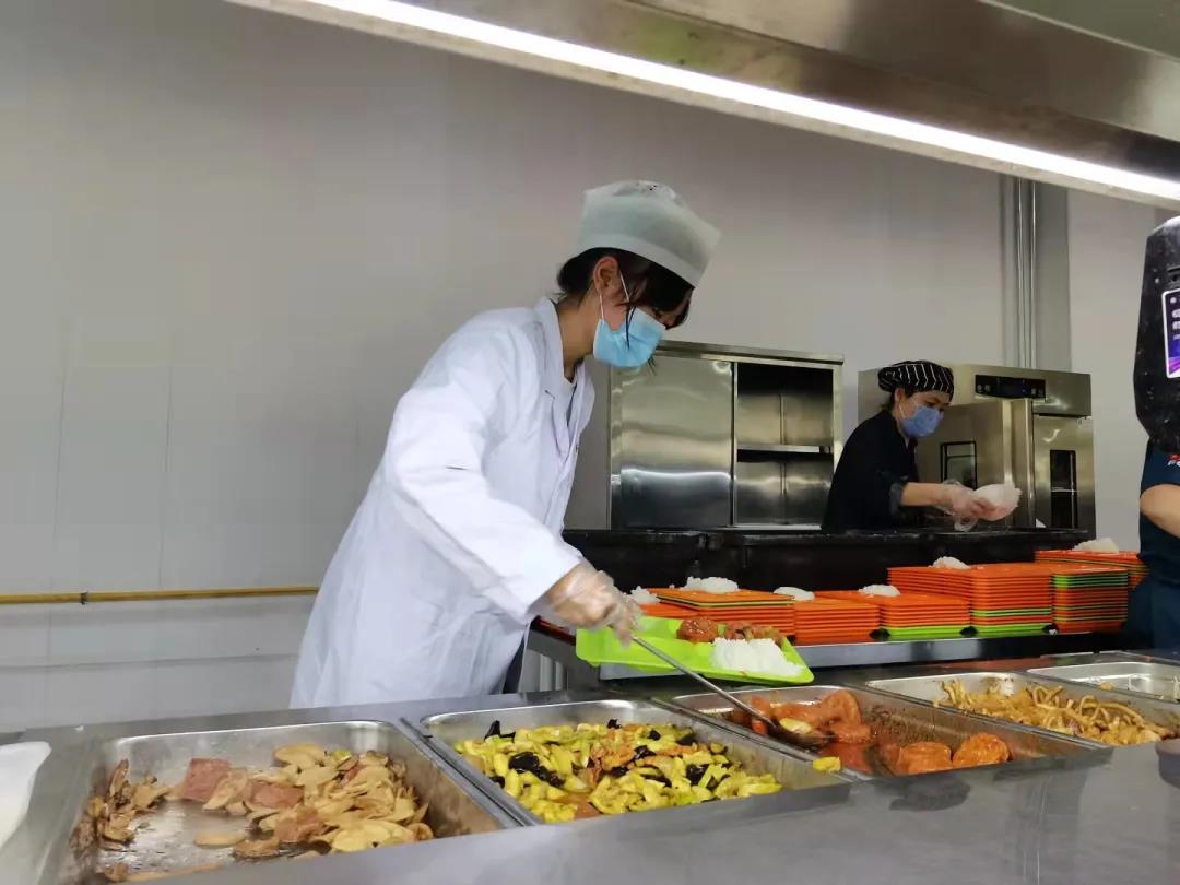 志愿者们分为两组,分别在中午11:30-12:30、下午6:00-7:00两个时间段开展工作。打饭前,大家在工作人员的带领下换上工作服,做好卫生安全措施,参加志愿服务的同学均已通过体检。同学们到备餐区域准备食物,整理餐盘,很快进入工作状态。中午11:30,通过食堂工作人员对刷卡机的耐心讲解以及各窗口饭菜的工作分配,志愿者们合理分工,在各个窗口有序地开展工作。