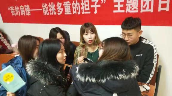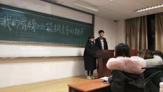 12月11日下午18点30分,我院2017级播音与主持艺术专业的同学在主楼0505教室举办了“我的肩膀——能挑多重的担子”系列主题团日活动。本次活动以座谈研讨和绘画大赛的形式开展,活动形式丰富新颖,同学们也都积极参与其中。