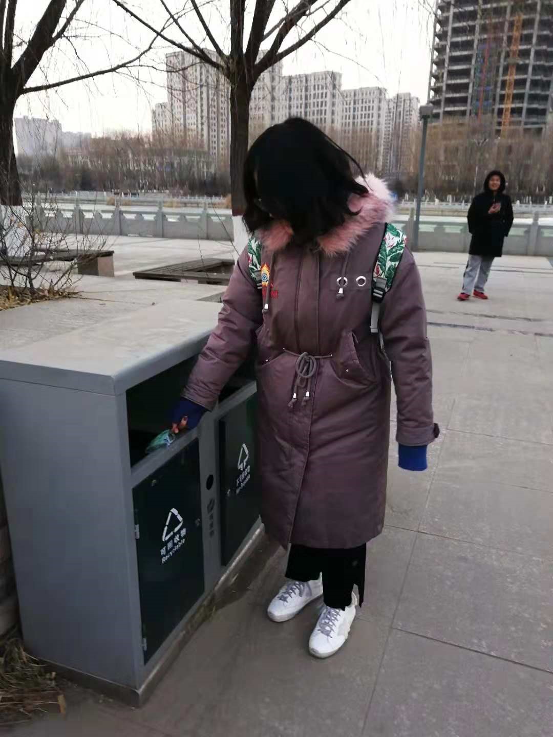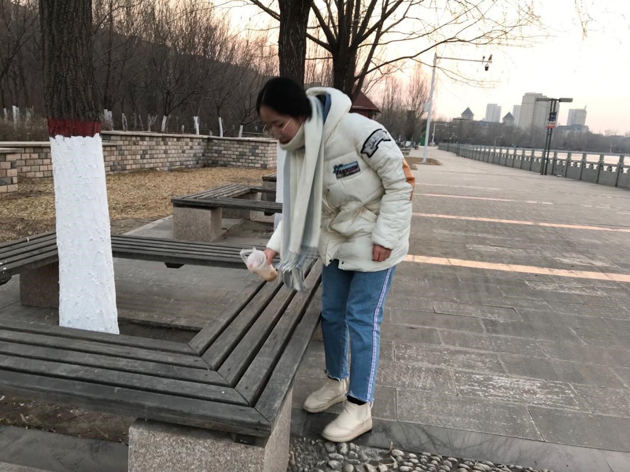当天气温有零下二十度,可同学们热情不减,积极帮助环卫工人打扫小黑河沿岸卫生。弯下腰拾起垃圾,在寒风中冻红的手更让同学们感受到平日里环卫工人工作的辛苦,大家都对默默付出的环卫工人心怀感谢。