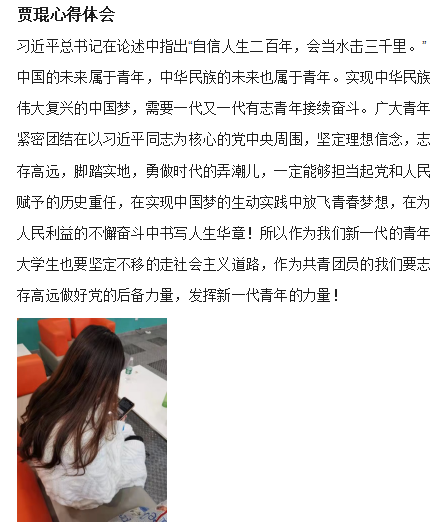 为深入贯彻落实习近平总书记关于青年工作的重要思想,持续巩固深化拓展党史学习教育成果,以崇高初心使命感召青年,以科学思想理论武装青年,我院团总支于4月19日—4月21日组织开展“喜迎二十大、永远跟党走、奋进新征程”线上主题团日活动,本次活动内容为“党的青年运动史”专题学习。2018-2021级各团支部创新形式、积极参与,深刻感悟共青团在党的领导下团结带领一代代青年跟党奋斗的光辉历程。
