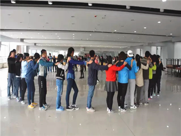 团队展示后,成员们共同完成了每一次挑战。在每个环节结束之后,由培训师做讲评,大家一起交流经验与心得。首先进行的是室内环节:爱的鼓励、为你揉肩和兔子舞。