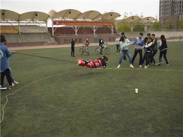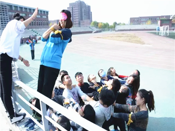 通过这三个小游戏,同学们克服了扭捏的心理,渐渐地放开自我,形成了轻松愉快的团队氛围。接下来同学们进入操场,开始了室外的环节。