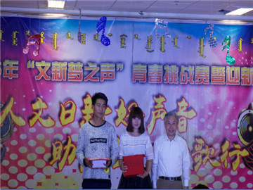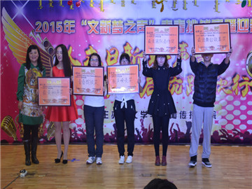 晚会最后,举行了隆重的颁奖典礼。来自2015级播音与主持专业的周子甄以原创歌曲《这是我》获得冠军;刘洋和刘杨梦婷获得亚军;高航、安达组合和吴朝鲁门则获得了季军。最美和声奖由2015级播音与主持专业获得,青春绽放奖由2015级汉语国际教育专业获得,2015级汉语言文学专业获得歌声嘹亮奖,2015级新闻学专业获得最佳团队合作奖,最佳舞台效果奖由2015级编辑出版专业获得。至此,2015年“文新梦之声”青春挑战赛暨迎新晚会落下帷幕。