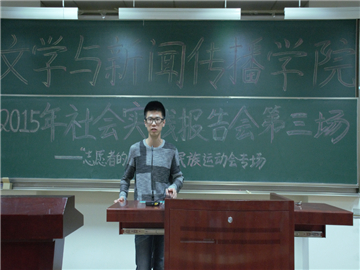 学院为了弘扬“奉献、友爱、互助、进步”的志愿精神,全面展示参与全国少数民族运动会志愿服务优秀志愿者的风采,并从他们的实践经历中汲取成果和经验,引导和促进广大学生树立“实践出真知”的理念,提升同学们的实践活动能力和水平,使其更深入地体会社会实践对大学生成长的促进作用,为今后的学习生活树立目标,我院于2015年10月28日在主楼DF0201举办了社会实践报告会第三场“志愿者的青春故事”民族运动会志愿者报告会专场,报告会上由四位具有代表性的优秀志愿者与同学们分享志愿者的实践故事和志愿服务过程中的收获。