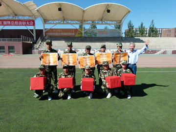 在为期12天的军训中,同学们用勤奋和汗水打造了五支高素质的钢铁连队,勤奋训练,刻苦争先,在完成各项军事训练的同时也获得了优异的军训评比成绩。由我院汉语国家教育专业组成的5连获“军事训练优秀连队”称号,4连汉语言文学专业与5连获“内务卫生优秀连队”称号。全体本科生辅导员李旺被评为“优秀学院指导员”,2013级汉语言文学专业班主任黄肖嘉和2013级汉语国际教育专业班主任左少峰被评为“优秀连队指导员”称号。