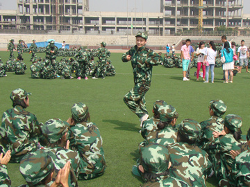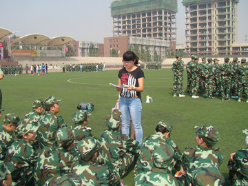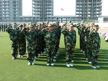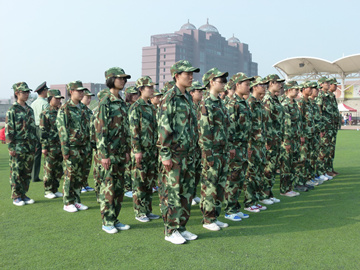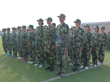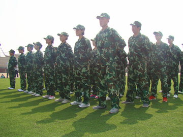 在绿茵操场上,学生们顶着骄阳,发扬不怕苦、不怕累、顽强拼搏的精神,听从教官的指挥,与教官密切配合,训练过程中一丝不苟,全神贯注地做好每个动作,力求达到整齐划一。