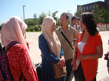 | 班主任和学生家长亲密交谈 |