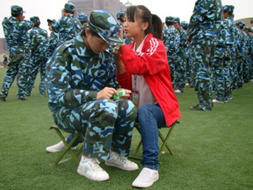 军训服务组热心帮助、悉心照顾伤病同学,提供应急药品,准备花露水、绿豆,休息时间表演文娱节目,细心、贴心、周到的服务,充分体现了文新院的人文关怀,成为了军训学生的坚强后盾,使他们拿出全部的激情和斗志来迎接军训的挑战。