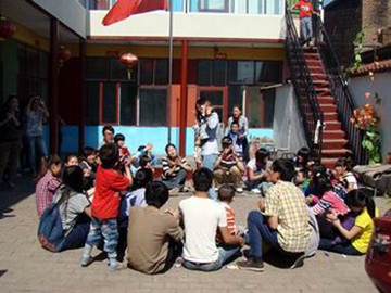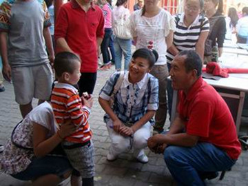聋哑特殊教育学校的孩子们对于大家的到来显得特别激动,大家刚进校门就被小朋友们热情地围着。他们虽然不会用语言表达自己的感情,但是从他们的天真无邪的眼神和笑容中可以看出他们对大哥哥大姐姐的喜爱。同学们和小朋友们围坐在一起玩了丢手绢的游戏,又为他们表演了各种儿歌,校园里欢声笑语,掌声不断,将欢乐的气氛推向高潮。