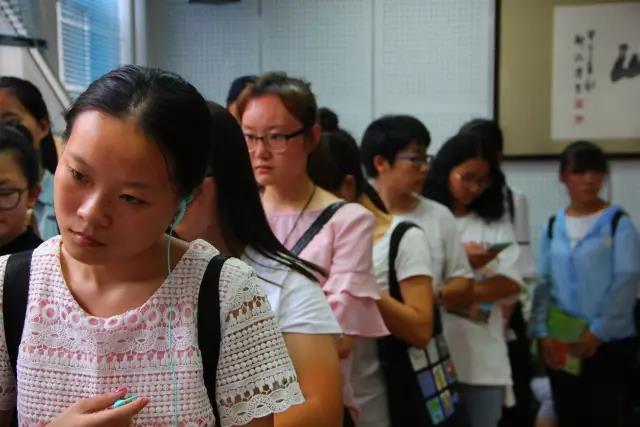 会议室外面的椅子上坐满了焦急等待的新生家长们,时刻关注着与孩子们切身相关的信息与问题。