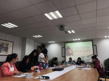 研究生会主席李晨冉及各部长与新生交谈