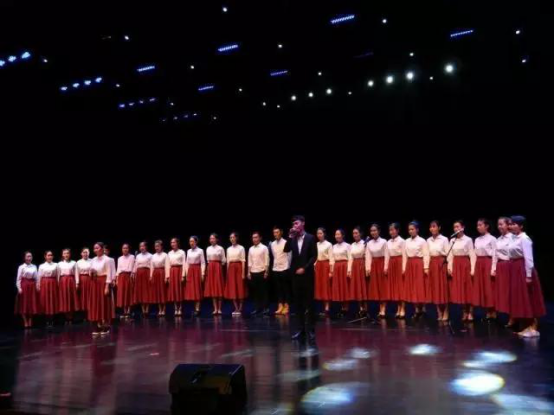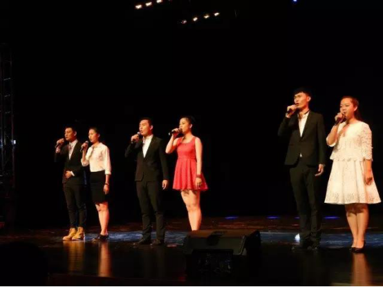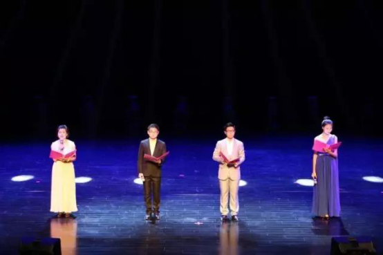 我院多才多艺的老师们同样给大家带来沉稳大气的表演。文学博士远心老师与我院学生杨翔宇、孙旭凯、侯佐儒共同朗诵了远心老师的作品《大黑河》。这首一百五十行左右的长诗体现了诗人自我探寻、自我生长、灵魂重生、创造的精神历程。抑扬顿挫的朗诵,给在座的每个人以震撼。 研究生辅导员鄢冬老师和2013级播音与主持艺术专业的班主任刘国慧老师合唱的《我是一只小小鸟》,以高亢嘹亮的声音开启了晚会的第二个高潮。他们动感的嗓音震彻心扉,像逐梦路上的一只小小鸟引吭高歌、直冲云霄。而学历高、颜值高、身材好的16级播音主持专业班主任马瑜泽老师,为大家带来了正能量爆棚的歌曲《给未来的自己》,大气磅礴的曲风给我们逐梦的勇气。