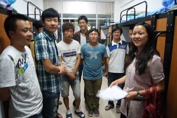 老师走访了学院2011级新生宿舍,了解新生的入住情况。