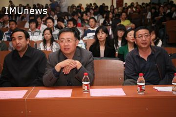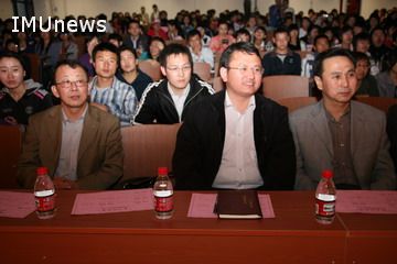 | 党政办主任铁勇(右图右一)、校党委宣传部部长乔旺(左图左一)、yl23455永利集团院长李树新教授(左图中)、校团委副书记(学工处副处长)李强(右图中)、新闻学系系主任高炜教授(右图左一)观看朗诵会 |