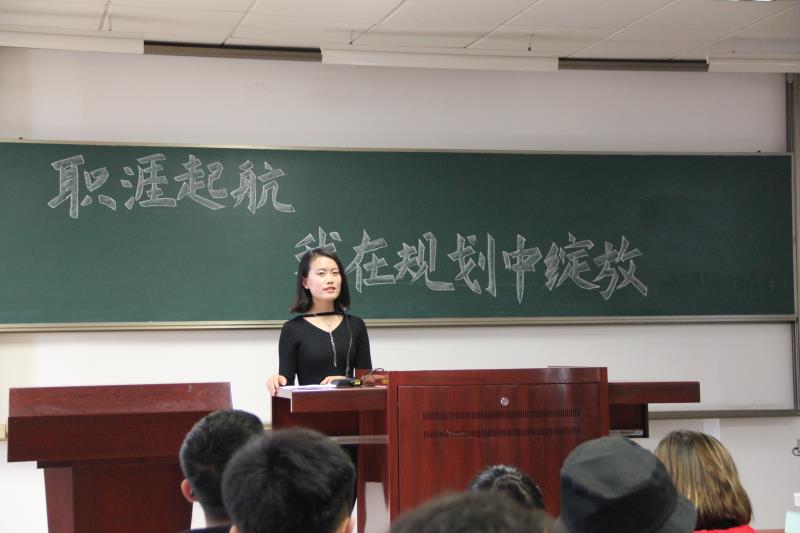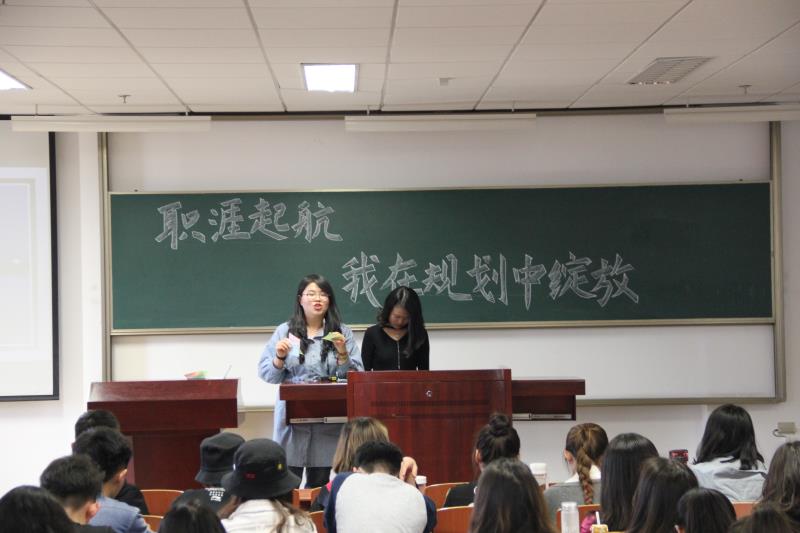 3月26日下午2:30,我院在主楼DF0403教室、DF0402教室举办“职涯起航,我在规划中绽放”职业生涯规划系列分享讲座,主讲人为2014级汉语言文学专业李超、汉语国际教育专业赵宇婧、新闻学专业魏洁宇、编辑出版学专业田珺妍。周琳娟老师主持讲座,我院2017级的全体学生参与。