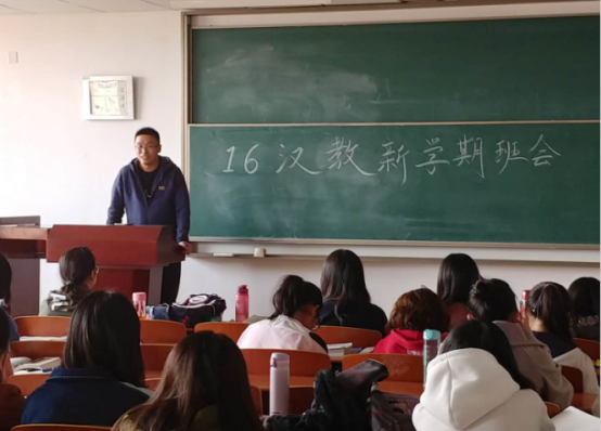 班主任马瑜泽老师在班会中从班团一体化建设、日常考勤请假、学业等方面提出了要求。马老师提到学习做到心中有数,为汇报演出打好功底,也为日后考研、找工作做好积累。