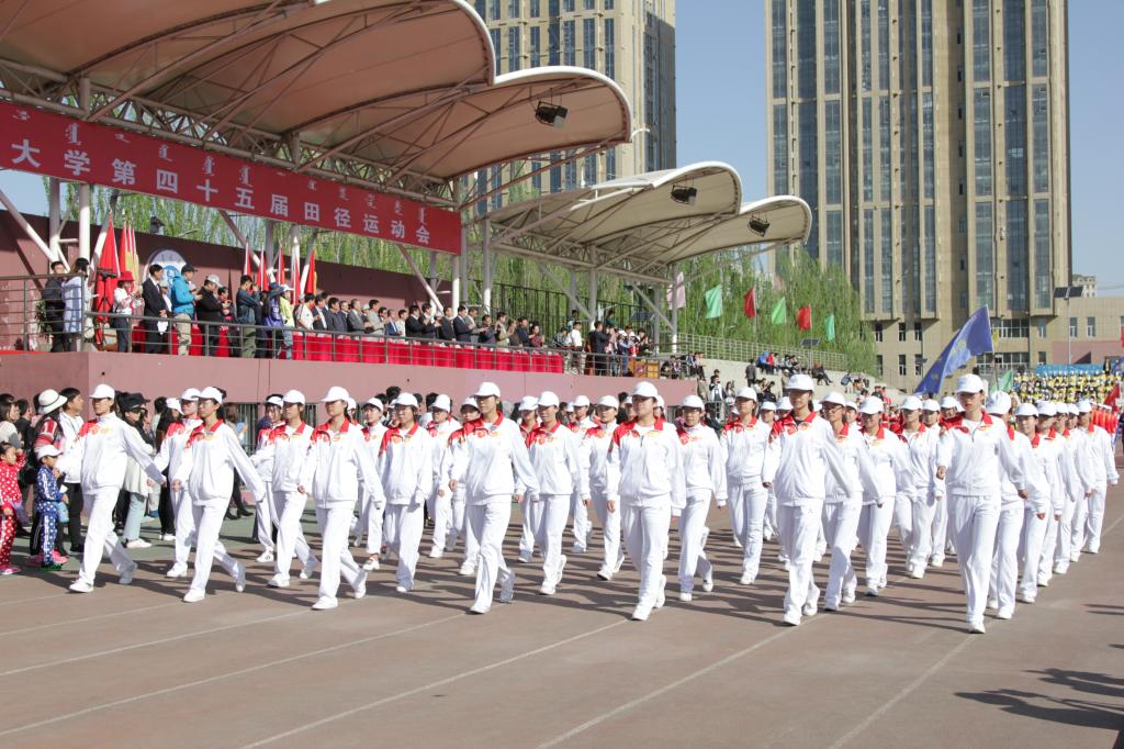 精彩的开场舞后,各学院代表队入场,我院代表队第二个入场。踏着鼓点,我院方阵迈着矫健的步伐经过主席台,他们昂首阔步,喊着响亮的口号,体现了文新学子昂扬的斗志。