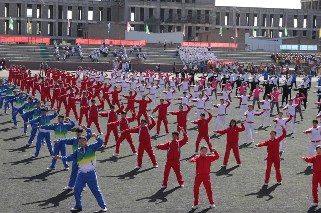 接下来是体操表演,我院体操队参加了表演,他们身着红色服装,动作整齐划一、精神饱满,这些都是他们长期训练的成果。