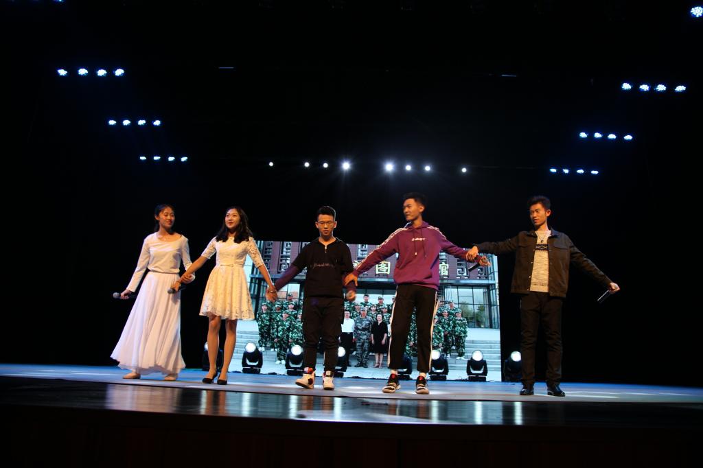 第三篇章“改革沐风,激情逐梦”以研究生刘欢的舞蹈《get ready》开场,嗨爆全场,晚会气氛进入高潮。来自2018级编辑出版学专业的同学们带来的《我们都是夜空中不同的星》,奇思妙想,让我们在夜空下感受着梦想的力量。而来自2016级播音与主持艺术专业同学们带来的歌舞串烧《mix》则将晚会带进了新一波的高潮。来自2016、2017、2018级播音与主持艺术专业同学们共同带来的演讲《中国的声音》带大家领略了改革开放四十年来中国巨龙的蜕变。在2018级汉语言文学专业同学们带来的合唱《仰望星空》中,迎新晚会圆满落下帷幕。