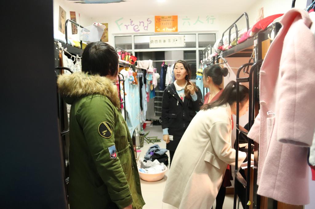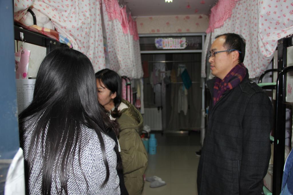 夜查过程中,老师们和学生会成员走进每一个宿舍,根据国庆前的摸底情况表,逐一与同学们核实住宿情况以及实习单位的情况。同时,老师也提醒同学们,最近气温骤降,宿舍还没有供暖,特别叮嘱同学要防寒保暖、预防感冒。