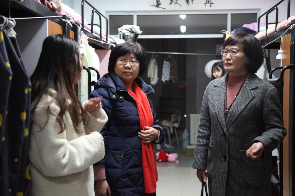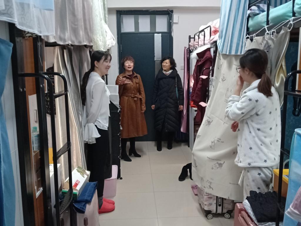 刘寒娥老师与张丽萍老师走进大三年级宿舍,与同学们了解宿舍供暖情况,提醒同学们多吃食堂,少订外卖,老师们的关怀让同学们倍感温暖。