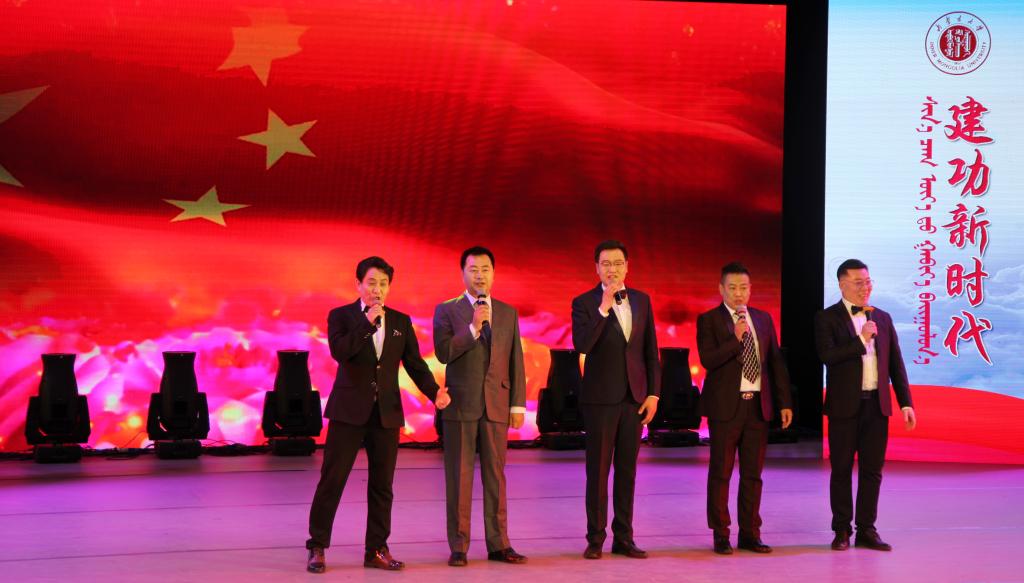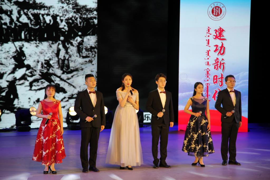 第一篇章“颂 青春中国”,由物理科学与技术学院学生原创的《亲爱的祖国》,深情诉说了青年学子对祖国母亲的眷恋。由内蒙古播音主持朗诵演讲协会的老师们表演的《红歌联唱》带领大家回到了风起云涌的革命年代,一位位有志青年用他们的青春和热血诠释了爱国的含义,更坚定了我们在中国共产党的带领下、在民族复兴的伟大征程中勇敢前行的雄心。现场观众随着熟悉的旋律,挥动着手中的国旗,表达着对祖国的热爱,激动之情溢于言表,现场气氛浓重热烈。yl23455永利集团和经济管理学院分别朗诵了著名诗人、词作家欧震老师创作的《美丽中国》《诗意中国》《青春中国》,欧震老师的这一系列作品,慷慨激昂地盛赞党领导人民创造的光辉历史和丰功伟绩,深情赞颂了伟大祖国和改革开放的新时代。