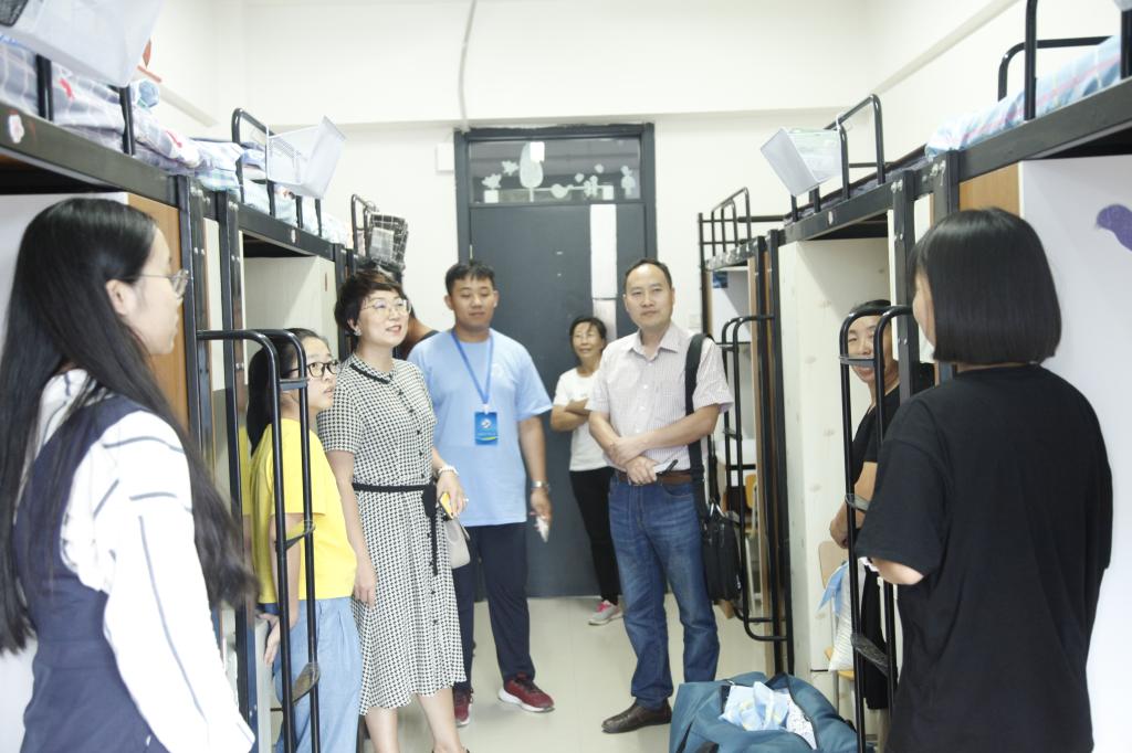 迎新期间,党总支副书记吴栓虎老师、团总支书记兼学工办主任周琳娟老师及2019级各班班主任、辅导员一同走访了新生宿舍。