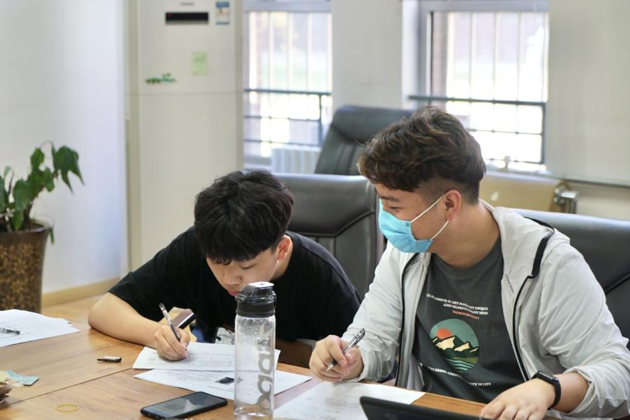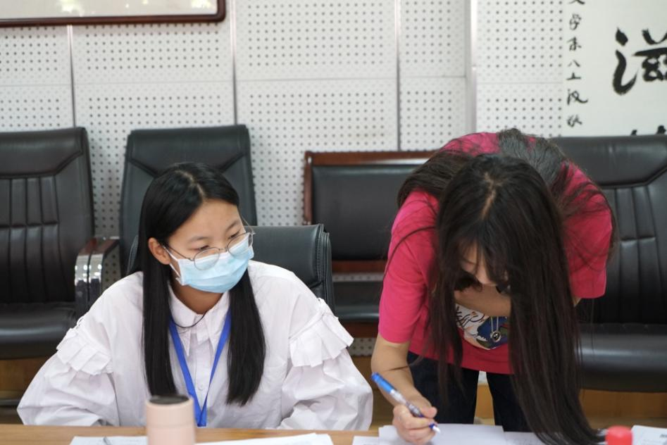 在学院报到点,2021级各班班主任和高年级辅导员及其他工作人员,就新生的档案及身份核验进行收集核验工作。