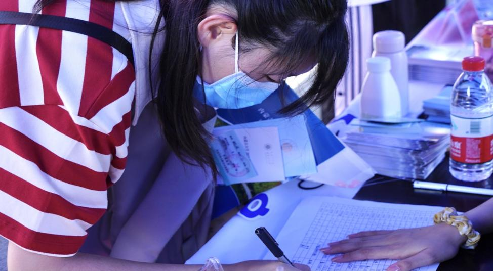 在室外报到处,我院学生会志愿者从早晨七点便做好准备迎接新生,热情、周到地为新生服务,耐心地答疑解惑。每一位新生持健康码、行程码、十四天体温监测记录表、新冠疫苗接种凭证和核酸检测报告进行登记,并领取通行卡。